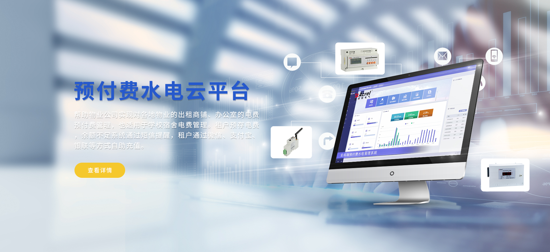 安科瑞提供的解決方案包括Acrel-EIoT能源物聯(lián)網(wǎng)云平臺(tái)、變電所運(yùn)維云平臺(tái)、安全用電管理云平臺(tái)、環(huán)保用電監(jiān)管云平臺(tái)、智慧消防云平臺(tái)、能源管理云平臺(tái)、工業(yè)企業(yè)能源管控平臺(tái)、遠(yuǎn)程預(yù)付費(fèi)云平臺(tái)、餐飲油煙監(jiān)管云平臺(tái)、電動(dòng)汽車/電瓶車充電樁收費(fèi)管理云平臺(tái)、電力監(jiān)控/無(wú)線測(cè)溫系統(tǒng)、電能質(zhì)量治理系統(tǒng)、電氣火災(zāi)監(jiān)控系統(tǒng)、消防設(shè)備電源監(jiān)控系統(tǒng)、防火門(mén)監(jiān)控系統(tǒng)、應(yīng)急照明和疏散指示系統(tǒng)、智能照明控制系統(tǒng)、醫(yī)用隔離電源絕緣監(jiān)測(cè)系統(tǒng)等,幫助用戶實(shí)現(xiàn)能源智能化、可視化、精細(xì)化管理,提高用能效率和用能安全,為企業(yè)節(jié)能降耗和實(shí)現(xiàn)能源數(shù)字化建設(shè)提供數(shù)據(jù)服務(wù)。